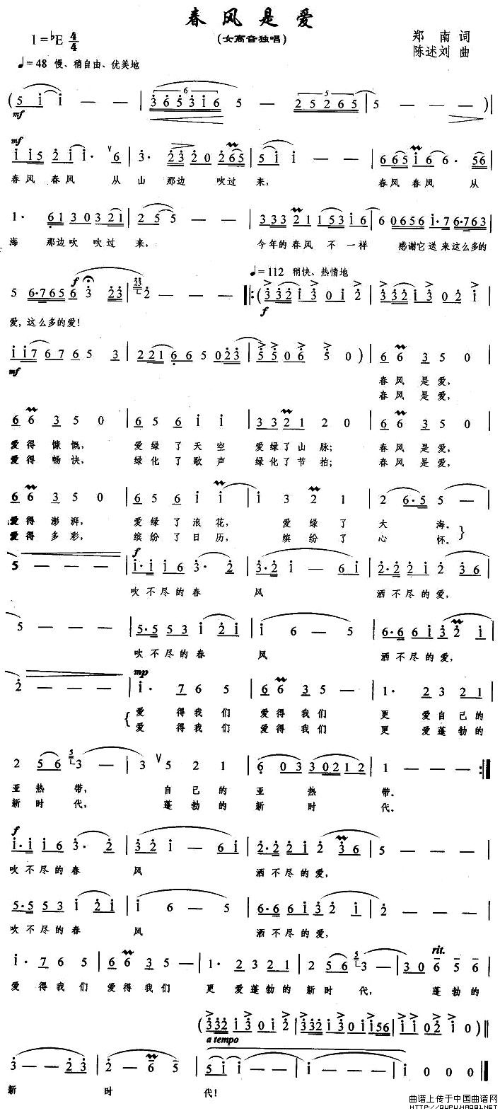 关于《春风是爱》曲谱的评论