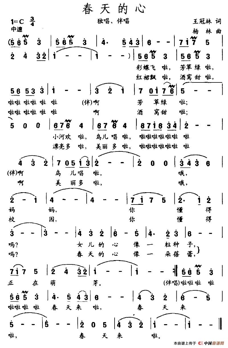 关于《春天的心》曲谱的评论
