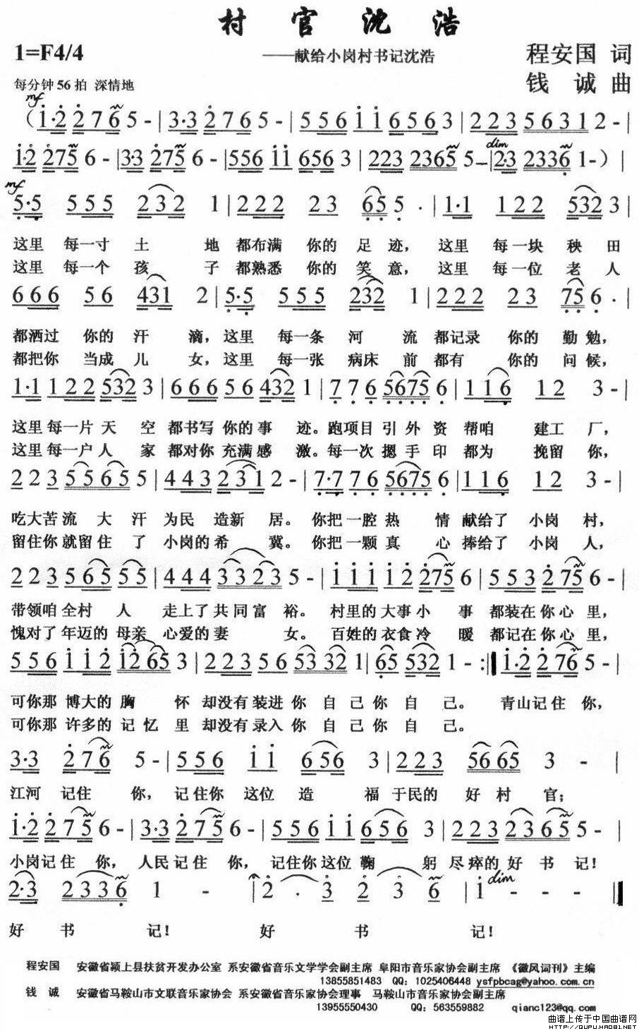 关于《村官沈浩》曲谱的评论