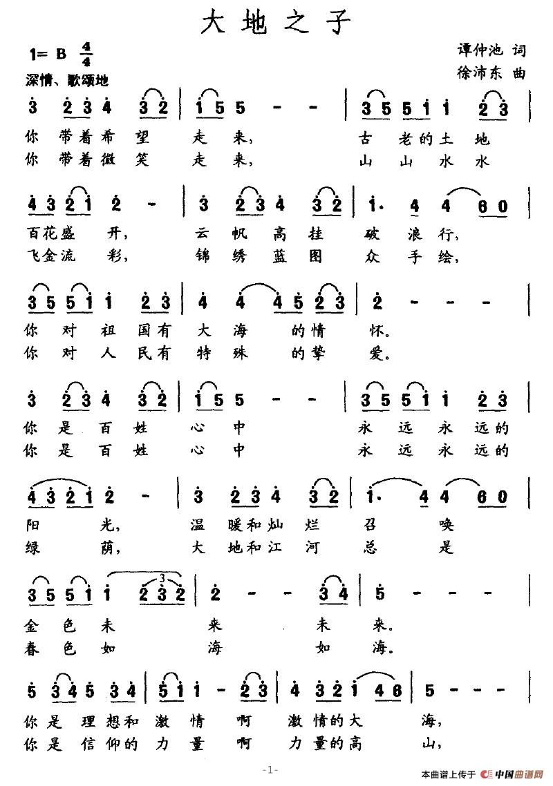 当前位置: 首页 民歌曲谱 四字歌名 大地之子(谭仲池词 徐沛东曲)