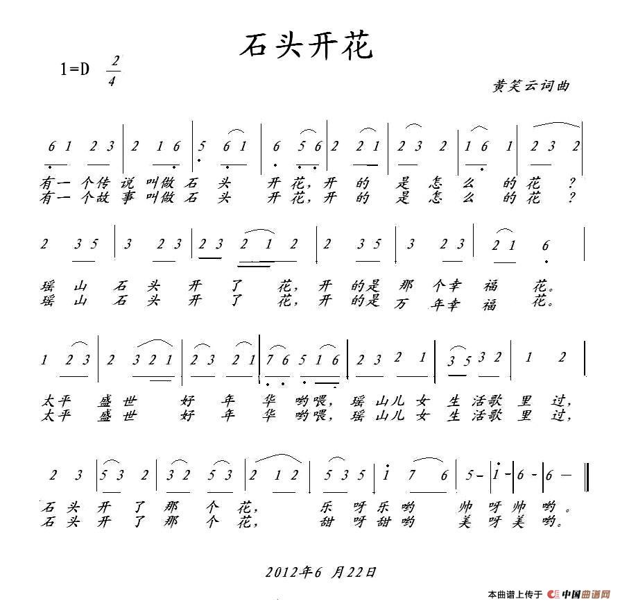 关于《石头开花》曲谱的评论
