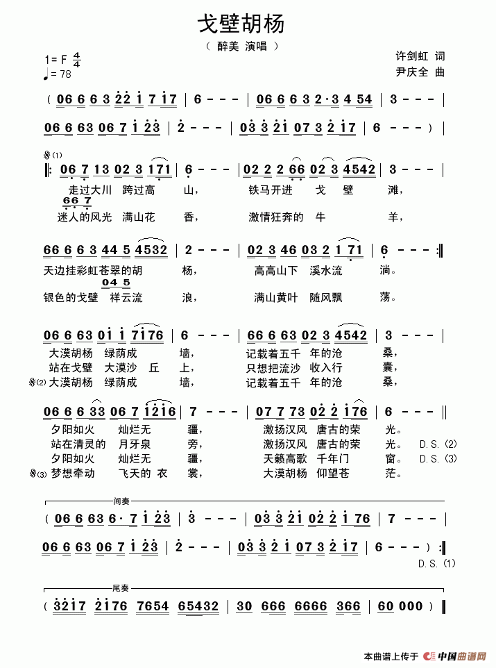致谢:《中国曲谱网》衷心感谢作者老师馈赠原版歌谱!