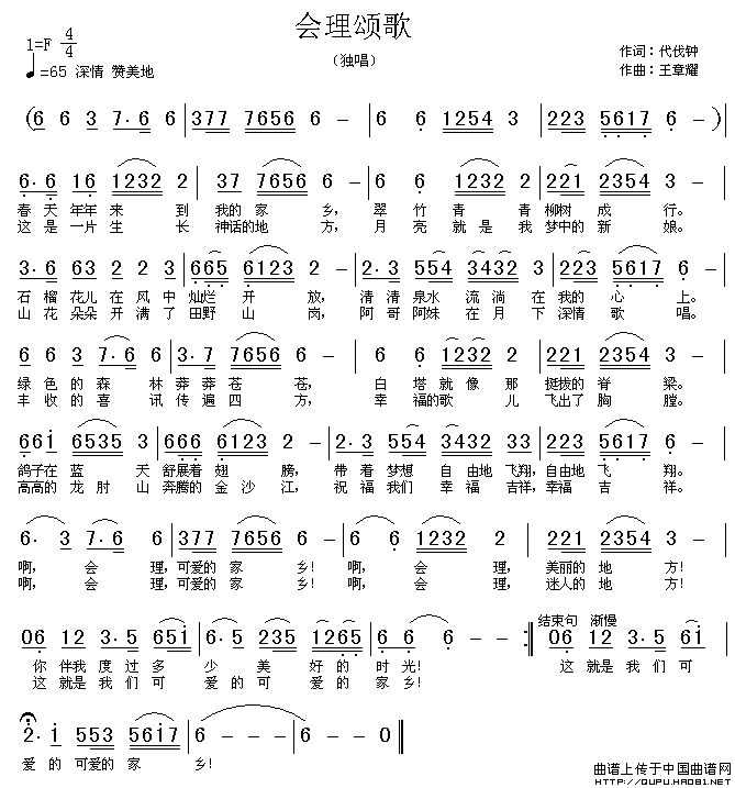 关于《会理颂歌》曲谱的评论