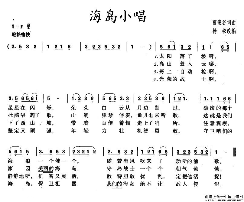 作词:曹俊谷 作曲:曹俊谷 格式:简谱 来源:《中国曲谱网》 上传:秋叶起舞