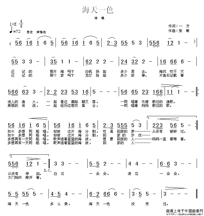 关于《海天一色》曲谱的评论