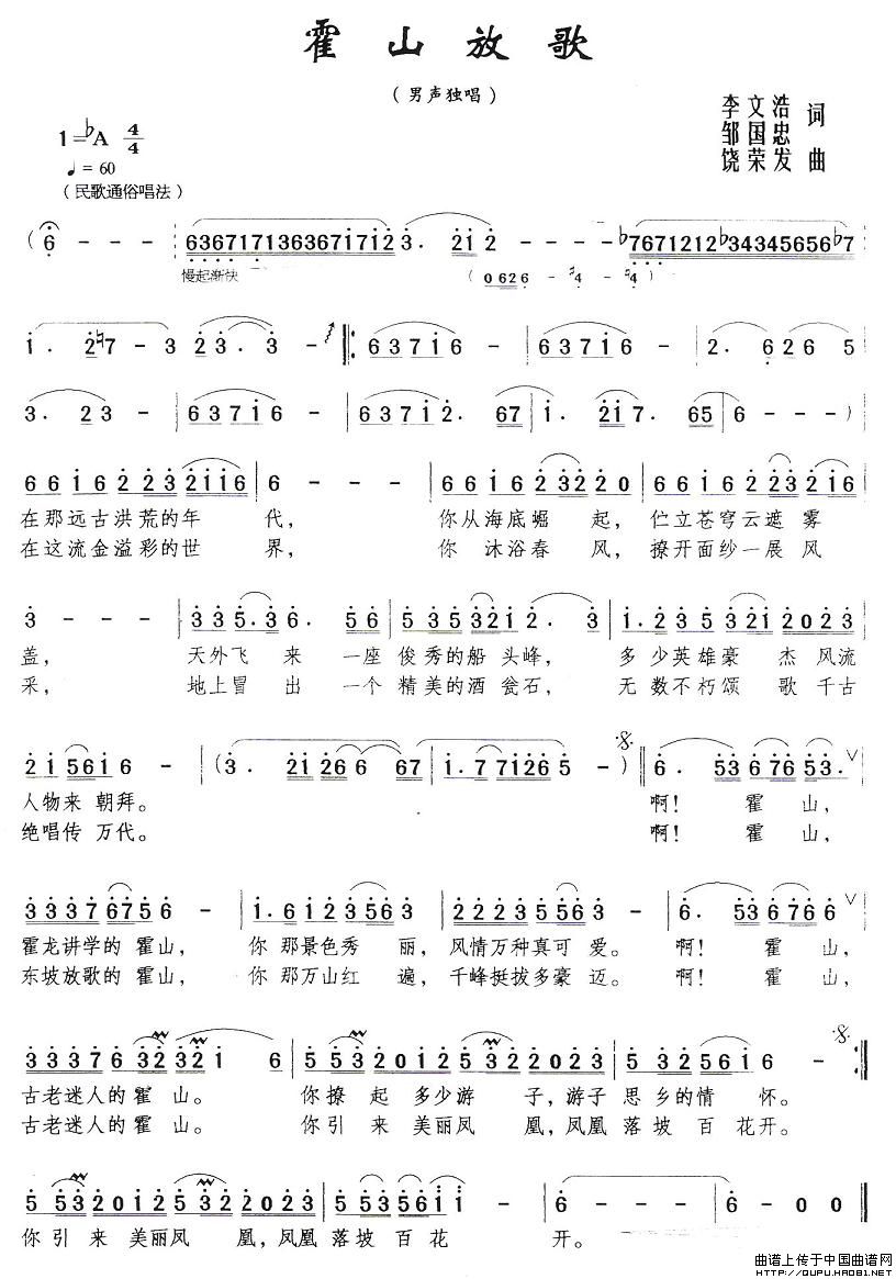 关于《霍山放歌》曲谱的评论