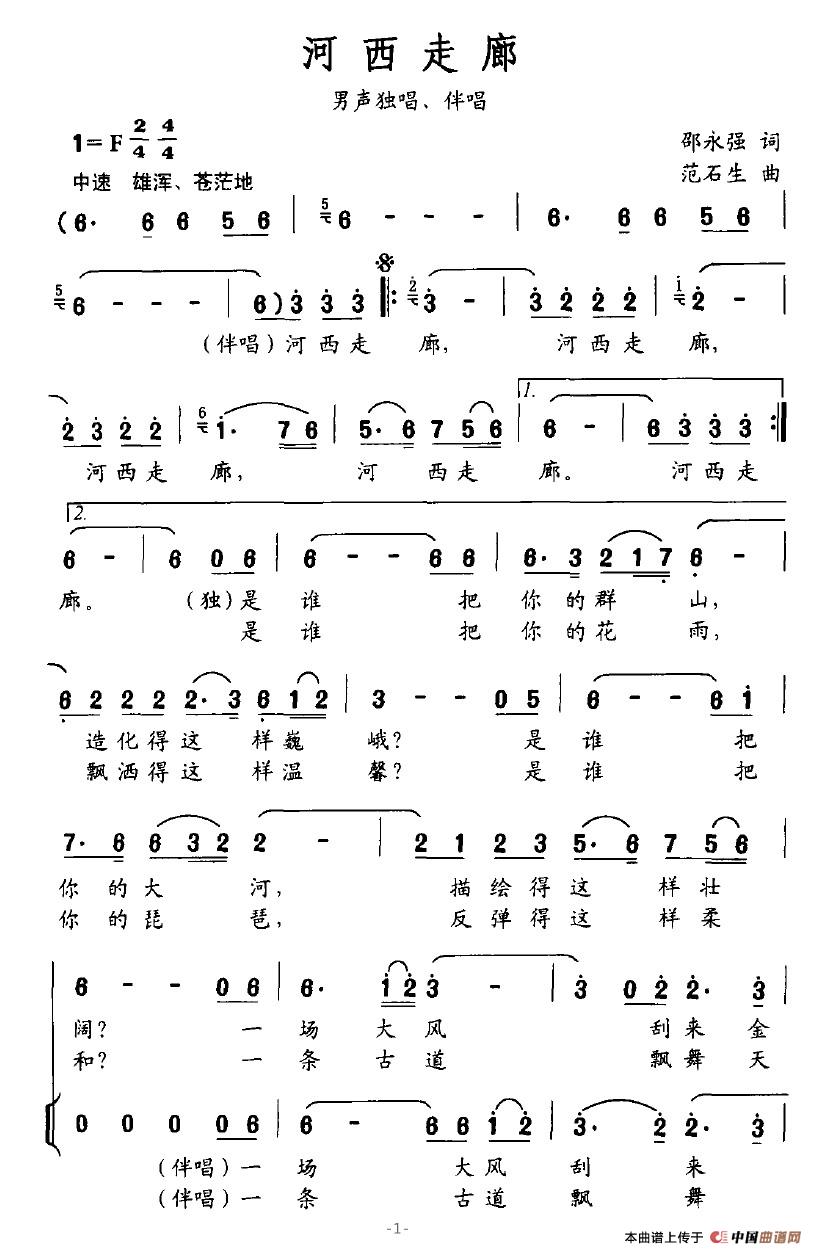 关于《河西走廊》曲谱的评论