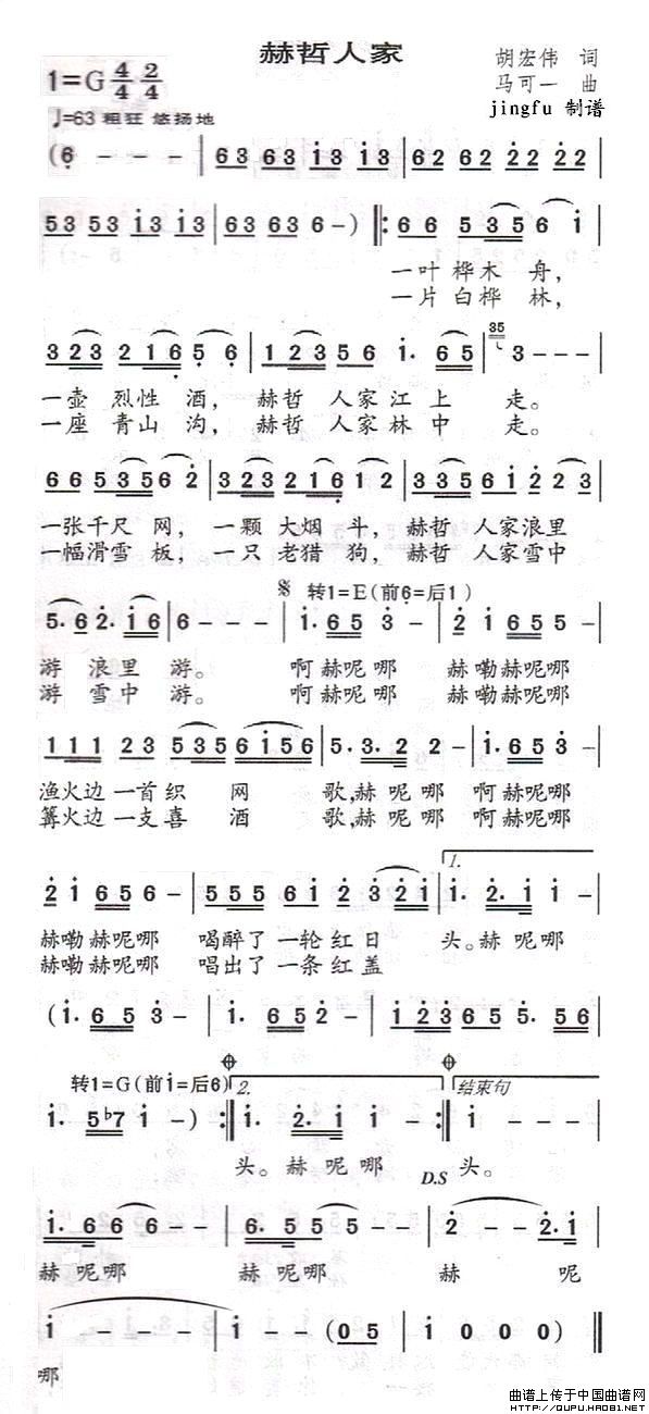 关于《赫哲人家》曲谱的评论