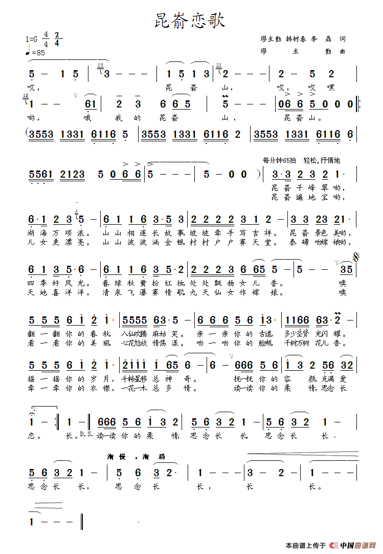 关于《昆嵛恋歌》曲谱的评论