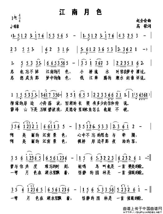 关于《江南月色》曲谱的评论
