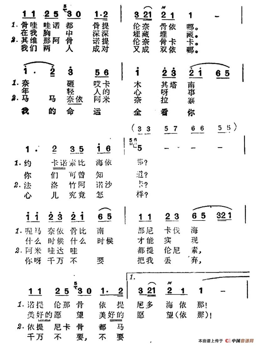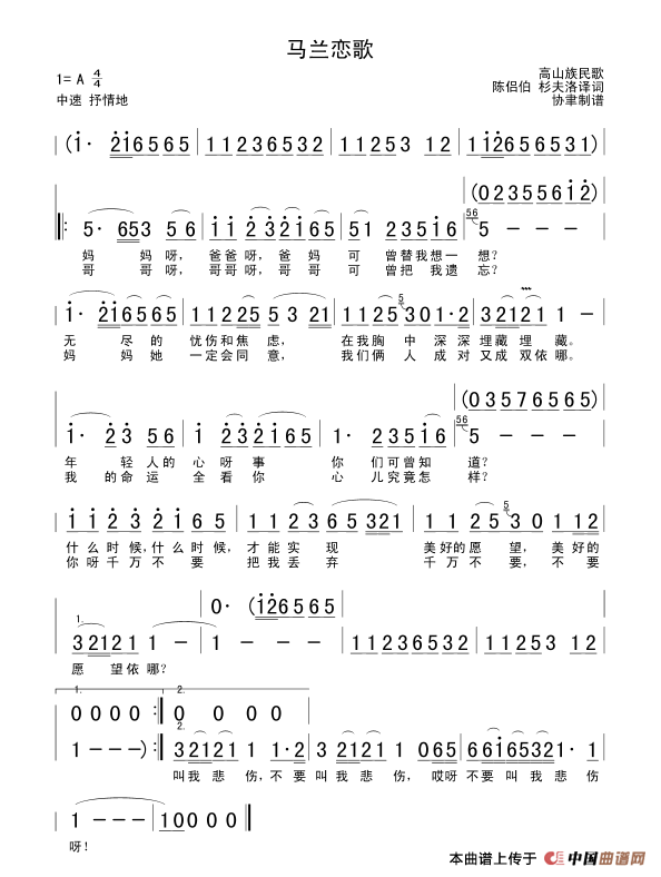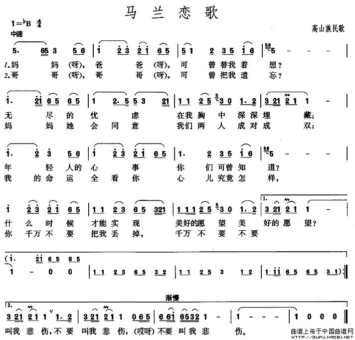 关于《马兰恋歌》曲谱的评论