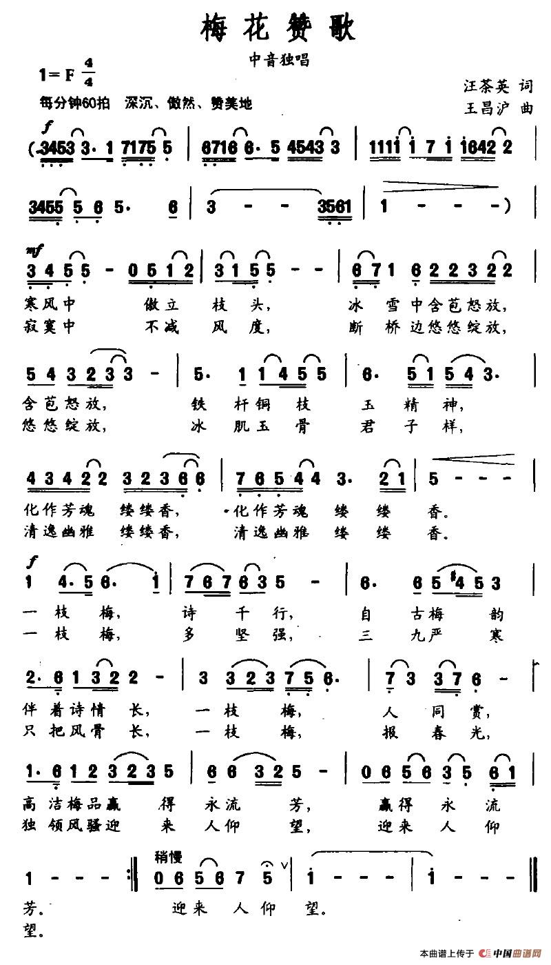 关于《梅花赞歌》曲谱的评论
