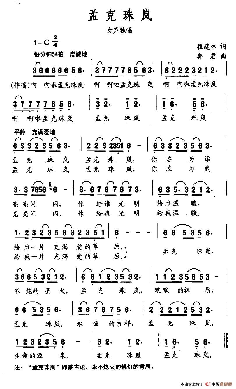 关于《孟克珠岚》曲谱的评论