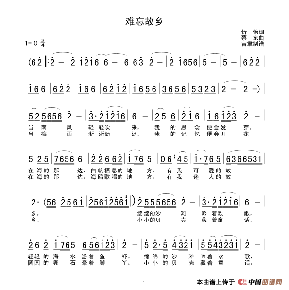难忘故乡(蔡东作曲版)