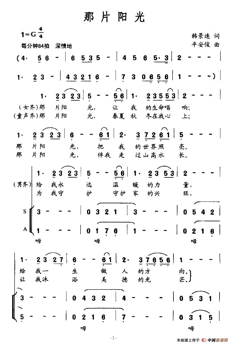 关于《那片阳光》曲谱的评论