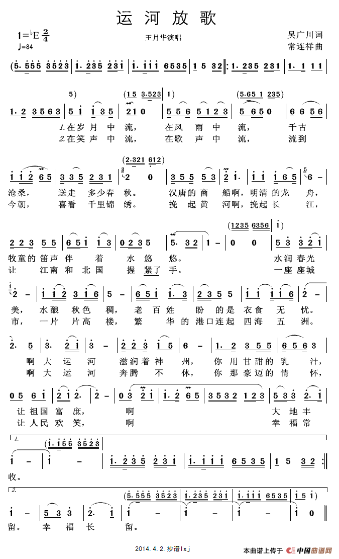 致谢:《中国曲谱网》衷心感谢作者老师馈赠原版歌谱!