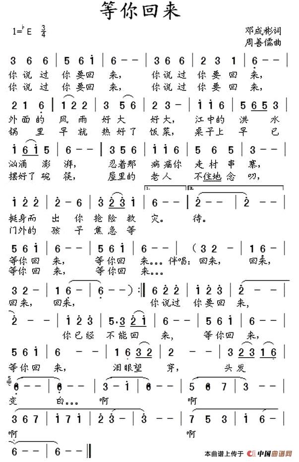 等你回来(邓成彬词 周善儒曲)