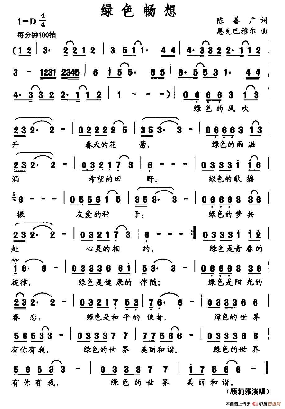 辰光和恩克巴雅尔(和平)合作,把《绿色畅想》表现得淋漓尽致,顾莉雅用优雅的歌声,把“绿色的世界有你有我,绿色的世界美丽和谐” 輸入(输入)听众的心田。让我们尽情展开想象的翅膀,畅想绿色未来,共创绿色家园;让我们感受这绿色的畅想曲,这与众不同、看得见、听得着的歌曲吧!
