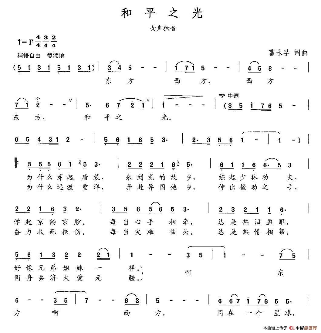 关于《和平之光》曲谱的评论