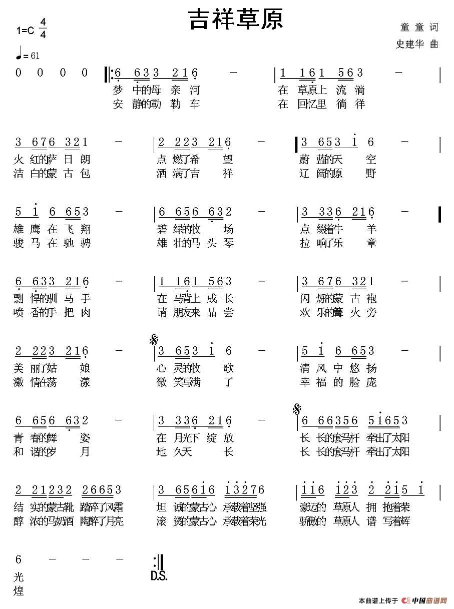 当前位置: 首页 民歌曲谱 四字歌名 吉祥草原(童童词 史建华曲)
