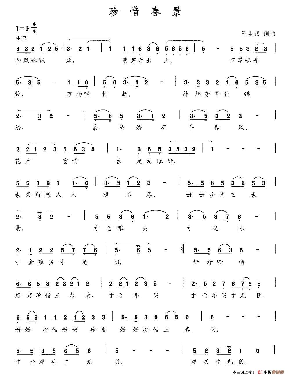 关于《珍惜春景》曲谱的评论
