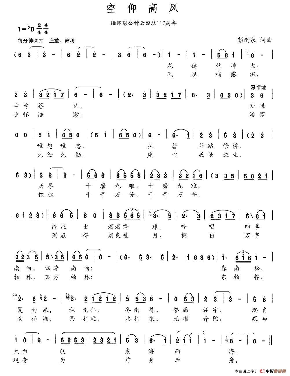 关于《空仰高风》曲谱的评论