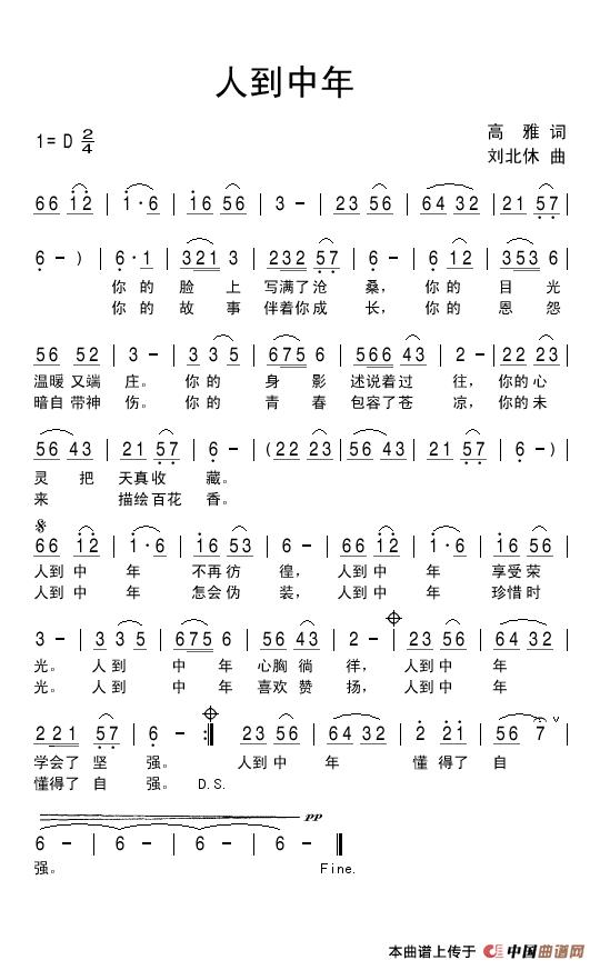 关于《人到中年》曲谱的评论
