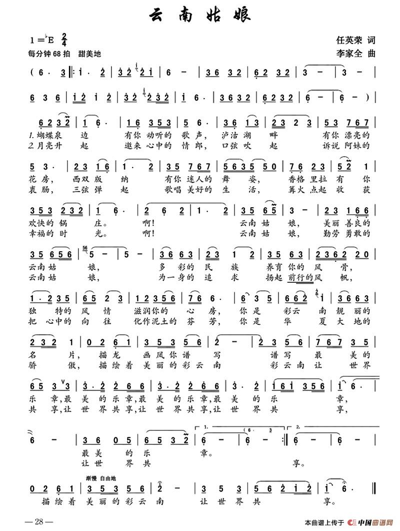 提示:在曲谱图片上单击右键,选择“图片另存为...”即可将曲谱保存到您的电脑中,打印时候可将图片插入到WORD中,调整合适大小打印即可。