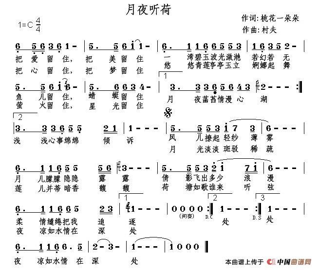 关于《月夜听荷》曲谱的评论