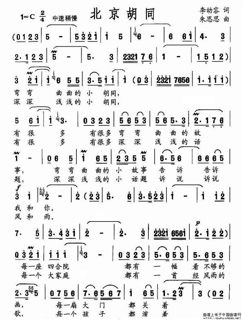 关于《北京胡同》曲谱的评论