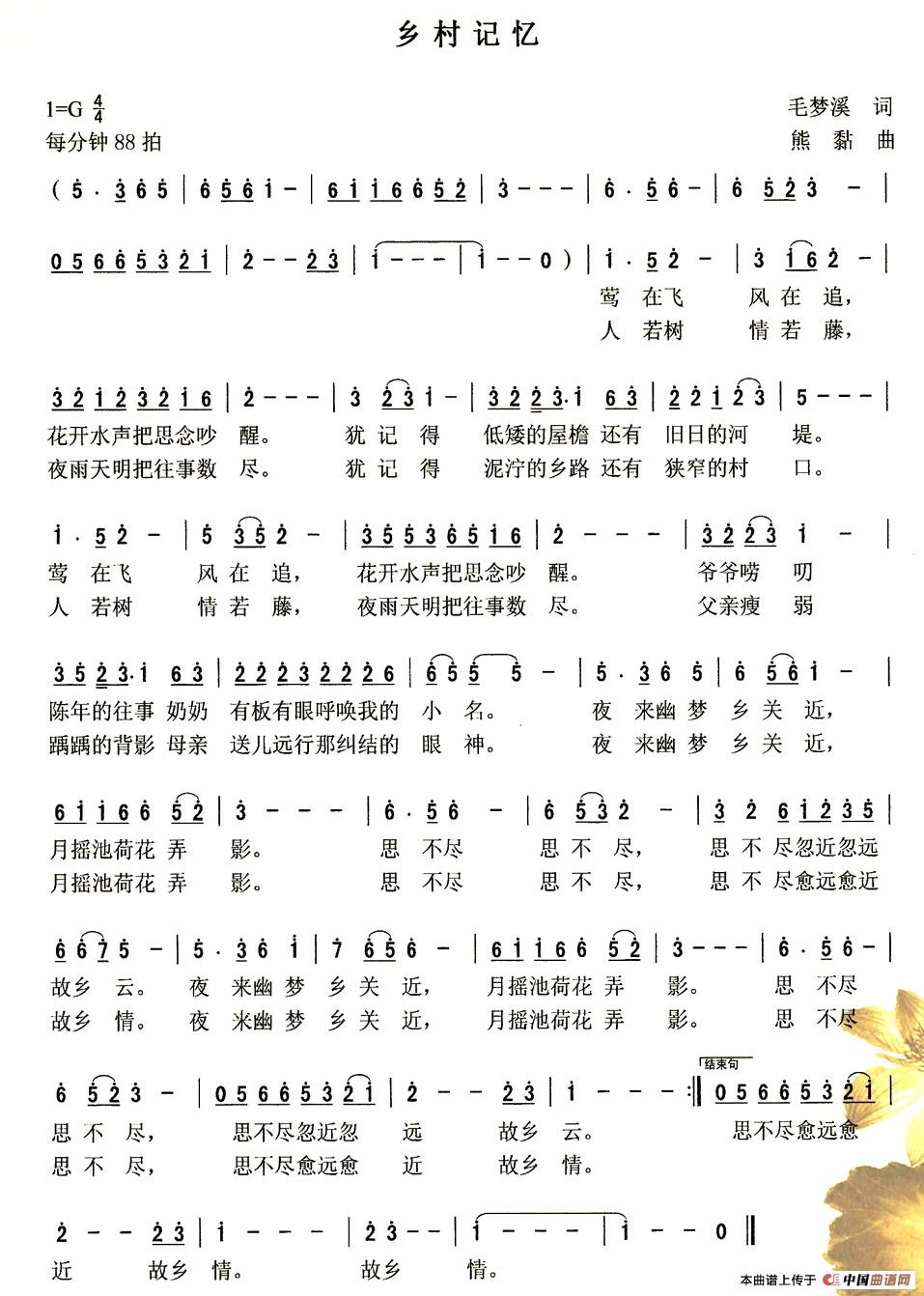 关于《乡村记忆》曲谱的评论