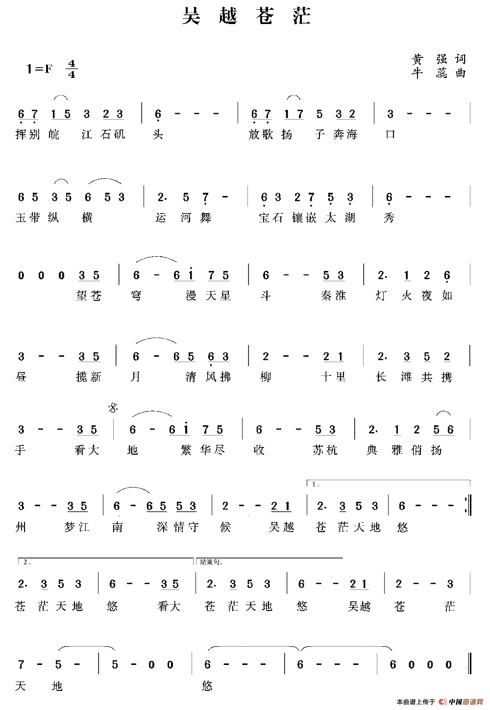 致谢:《中国曲谱网》衷心感谢作者老师馈赠原版歌谱!