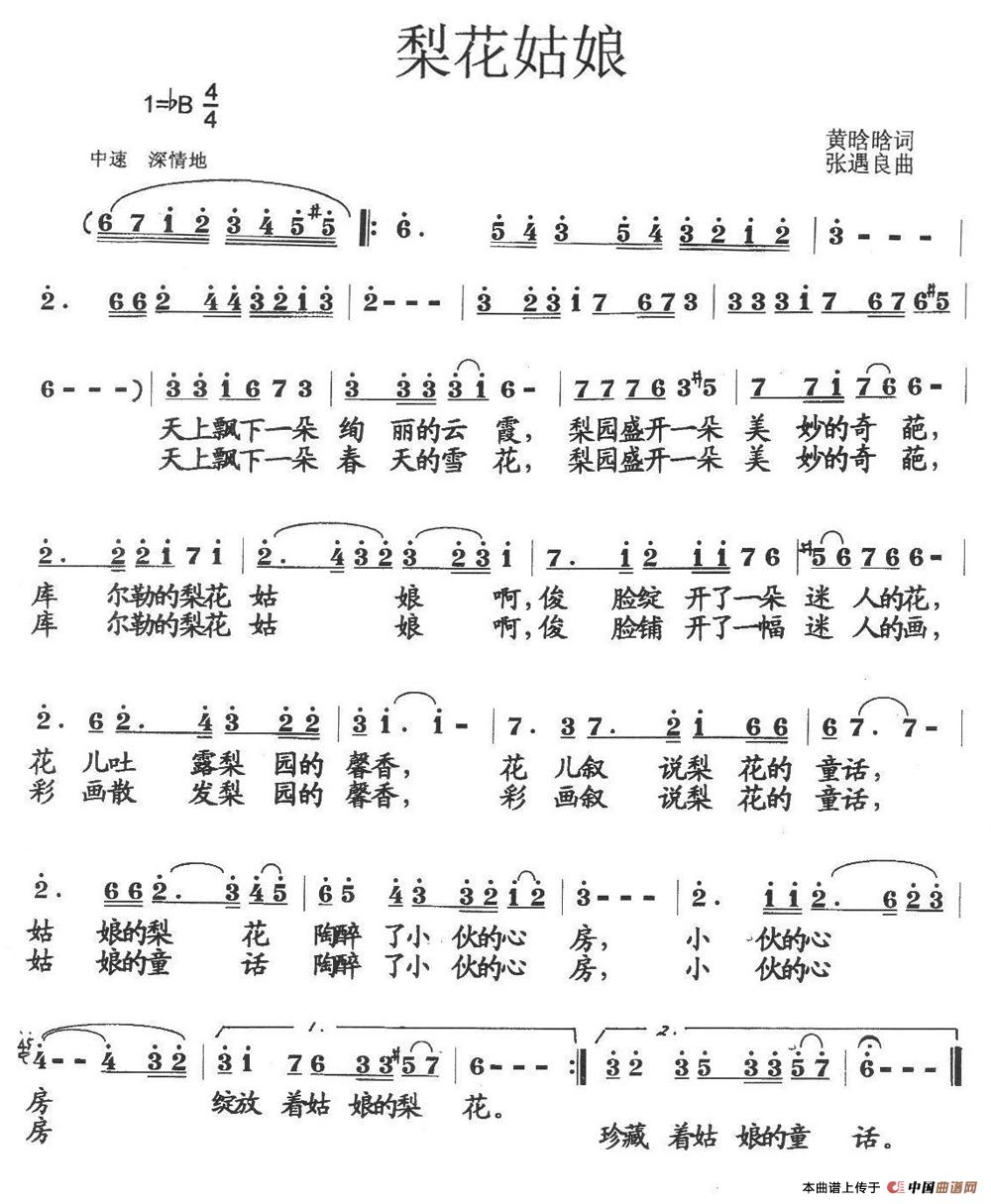 关于《梨花姑娘》曲谱的评论