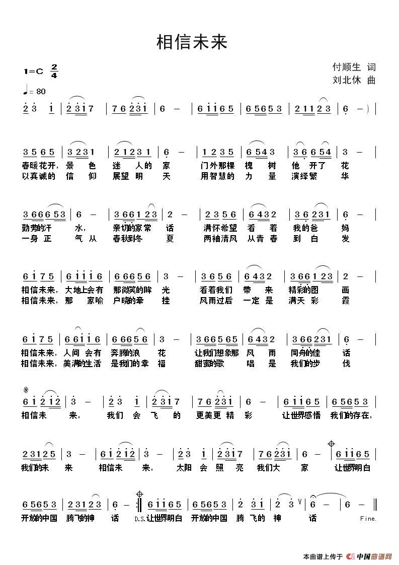 关于《相信未来》曲谱的评论