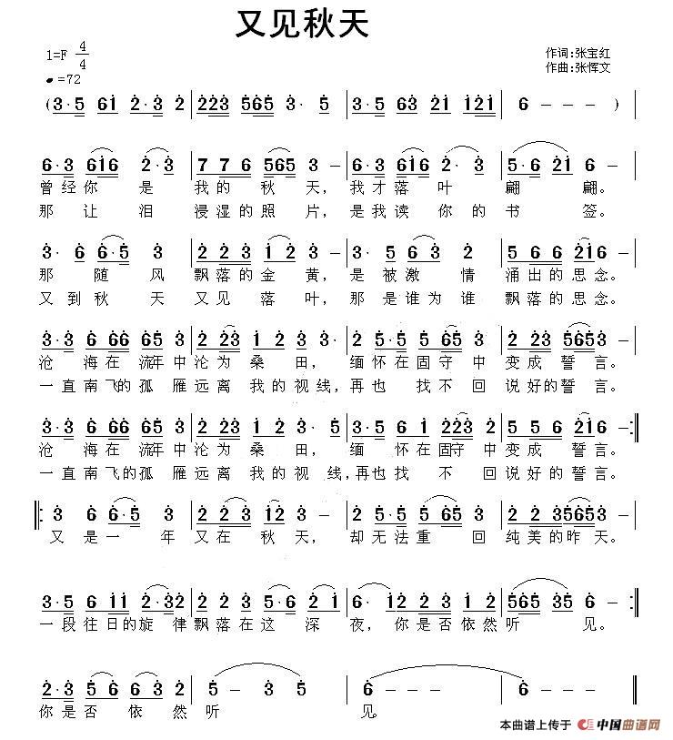 关于《又见秋天》曲谱的评论