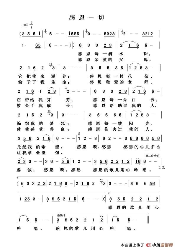 关于《感恩一切》曲谱的评论