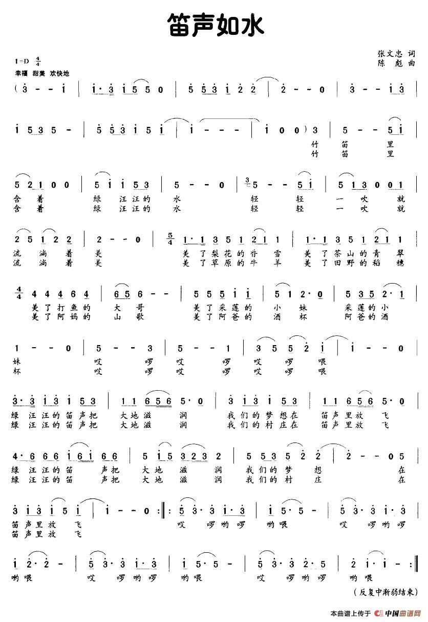 关于《笛声如水》曲谱的评论