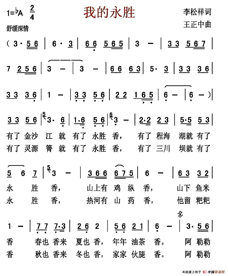 关于《我的永胜》曲谱的评论