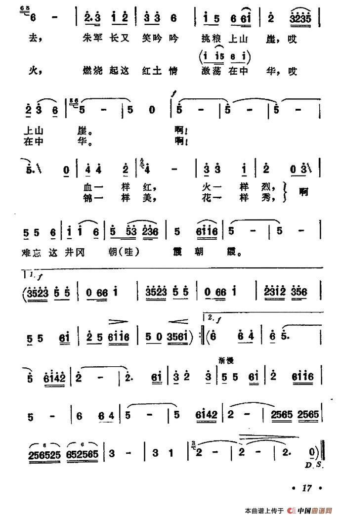 啊!血一样红,火一样烈,啊难忘这井冈朝哇霞朝霞。