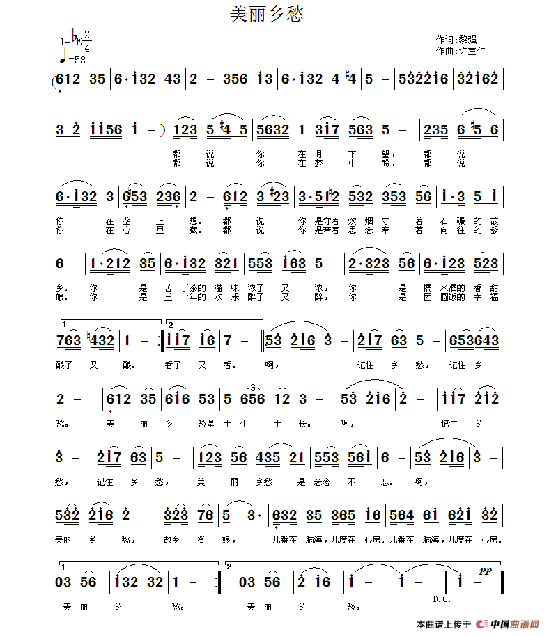 关于《美丽乡愁》曲谱的评论