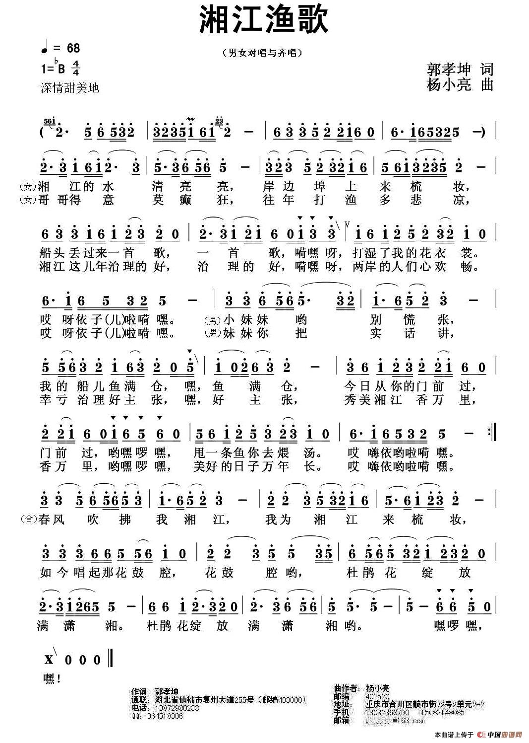 关于《湘江渔歌》曲谱的评论