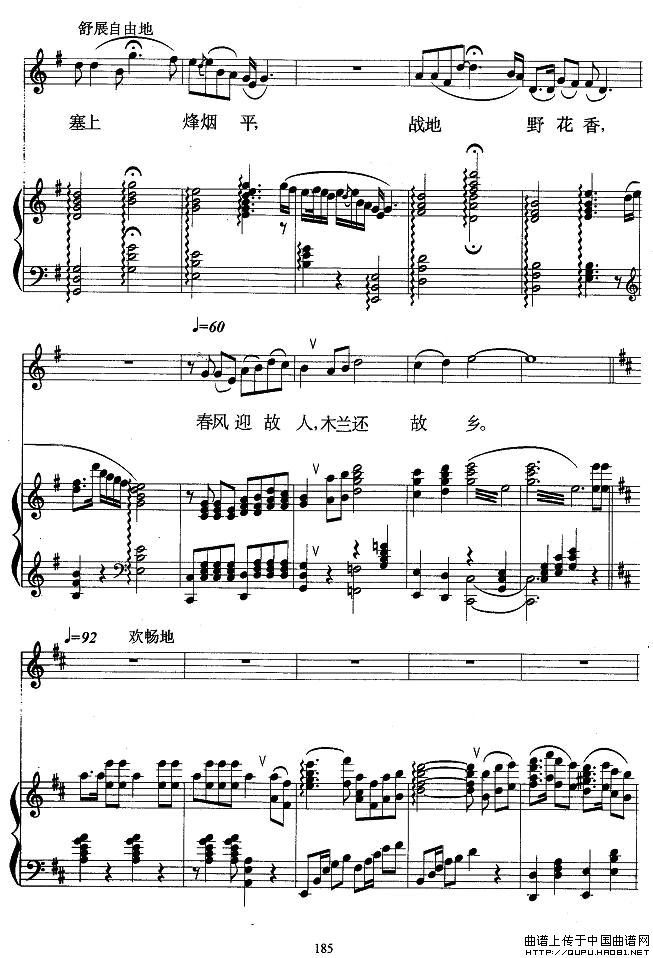 塞上风烟平,战地野花香,春风迎敌人,木兰还故乡。