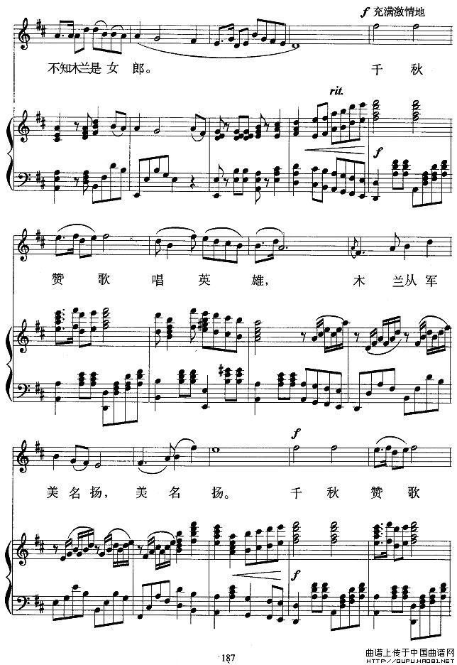 千秋赞歌唱英雄,木兰从军美名扬,美名扬。