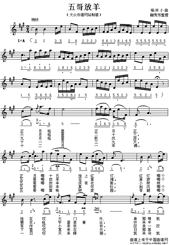 五哥放羊(线简谱对照版)