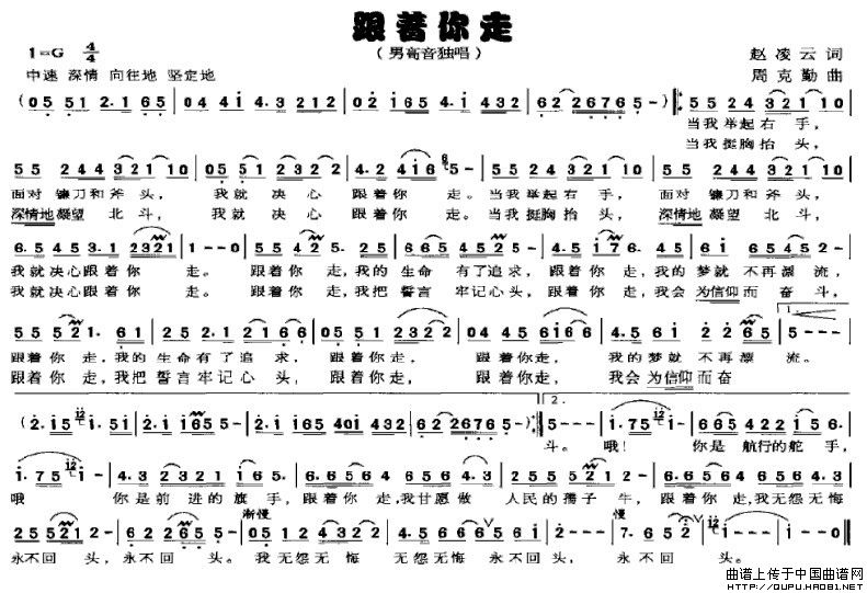 关于《跟着你走》曲谱的评论