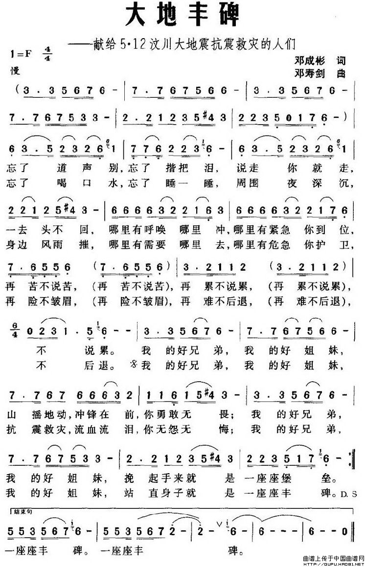 关于《大地丰碑——献给5·12汶川大地震抗震救灾的人们》曲谱的评论
