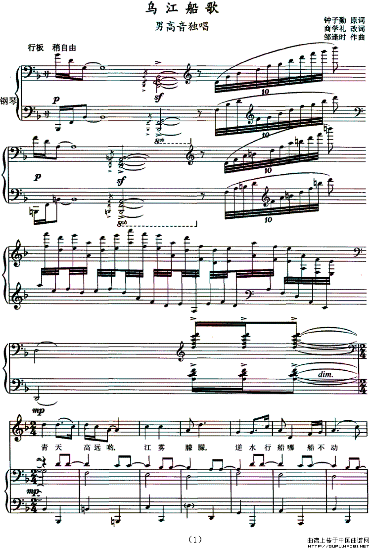 作词:钟子勤 作曲:邹逢时 格式:五线谱 来源:《中国曲谱网》 上传:秋叶起舞