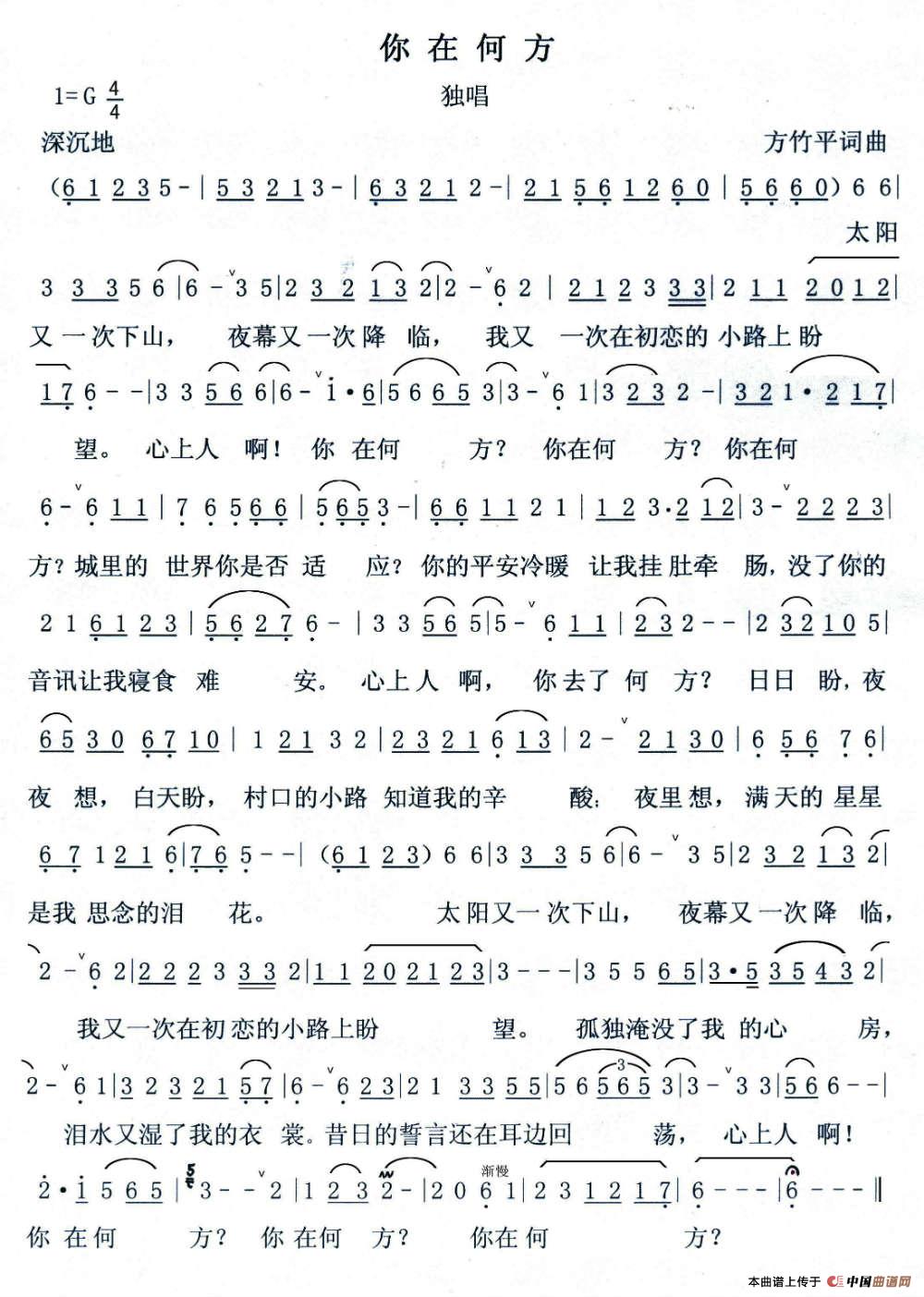 关于《你在何方》曲谱的评论