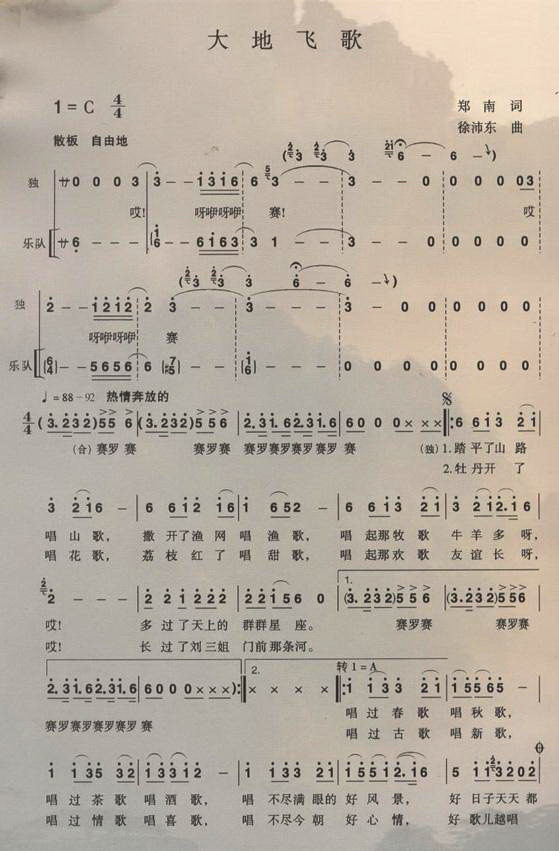 关于《大地飞歌》曲谱的评论