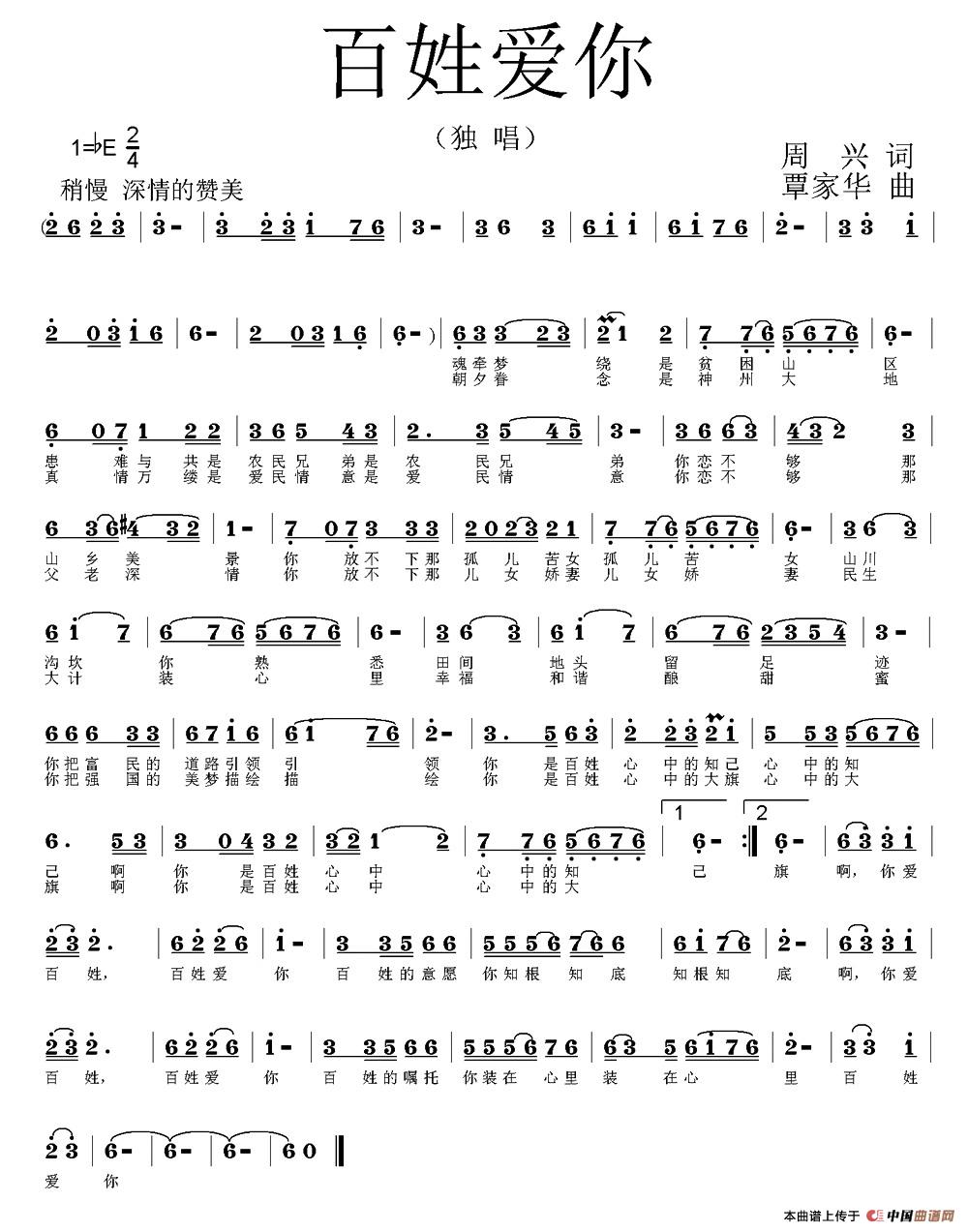 《百姓爱你》创作简介:当前,全国各族人民,万众一心,凝心聚力,为实现伟大的“中国梦”而共同奋斗。几十年来,特别是通过党的群众路线教育实践活动的开展,在各条领域里,都涌现出了全心全意为人民服务,深受广大人民群众爱戴的好党员,好干部,他们不计个人得失,爱岗敬业,艰苦奋斗,心系百姓,为民办事,为民做主,把党和国家的温暖送给人民群众,他们就是焦裕禄,就是孔繁森,就是带领人民群众走向国富民强的领路人,就是老百姓心中的知己和大旗。